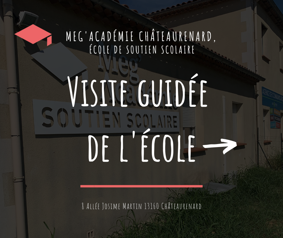 Notre école Még’Académie se situe sur la commune de Châteaurenard, à 5 min du Lycée Jean d’Ormesson et du collège Simone Veil. Elle est proche des communes : Noves, Eyragues, Saint-Rémy de Provence, Cabannes, Maillane, Graveson, Rognonas, Barbentane, Montfavet, Avignon, Morières, Caumont-sur-Durance.
